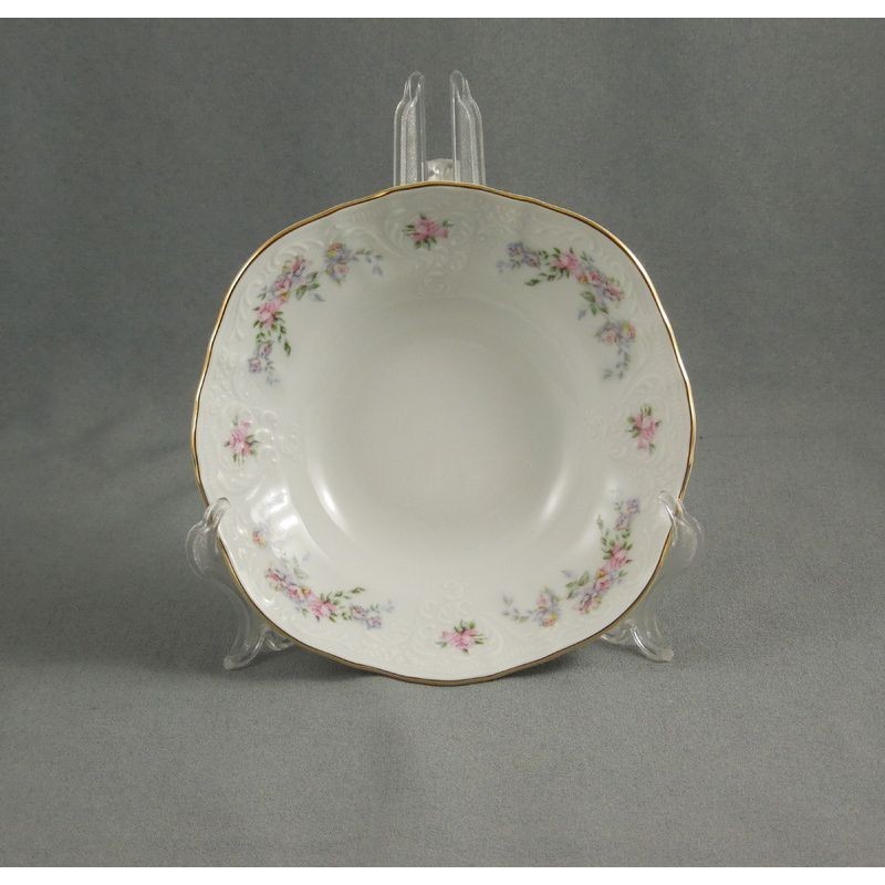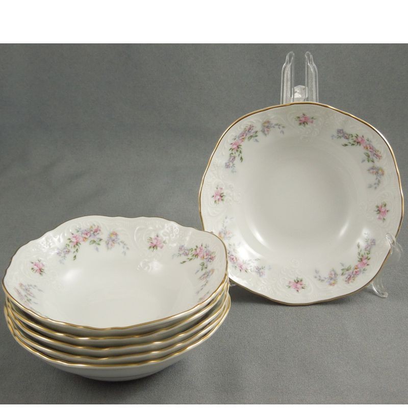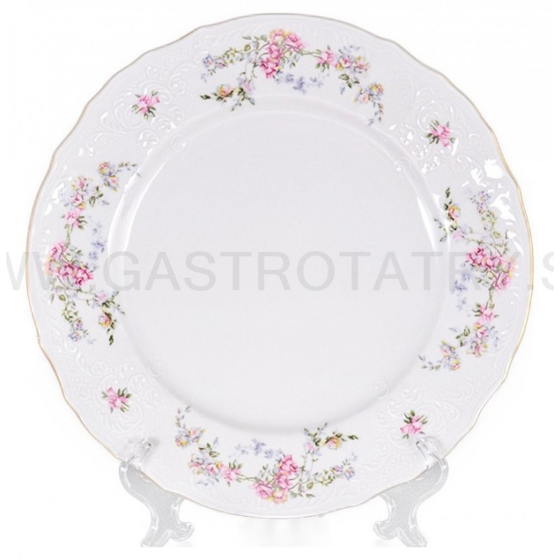 BERNADOTTE Jemné ružové kvety + zlatá linka biela 26D obedová súprava,