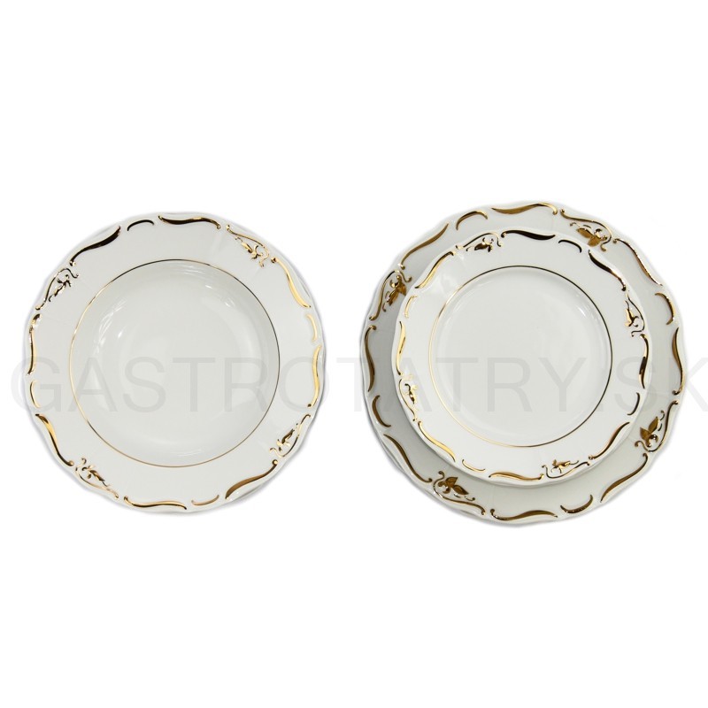 Karlovarský porcelán Maria Louise - Jemný zlatý ornament - tanierová súprava 18 dielna, nie je vhodná do mikrovlnej rúry a umývačky riadu.