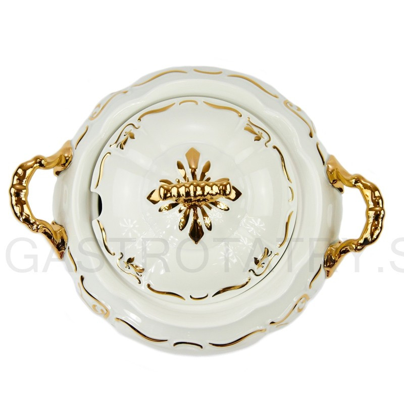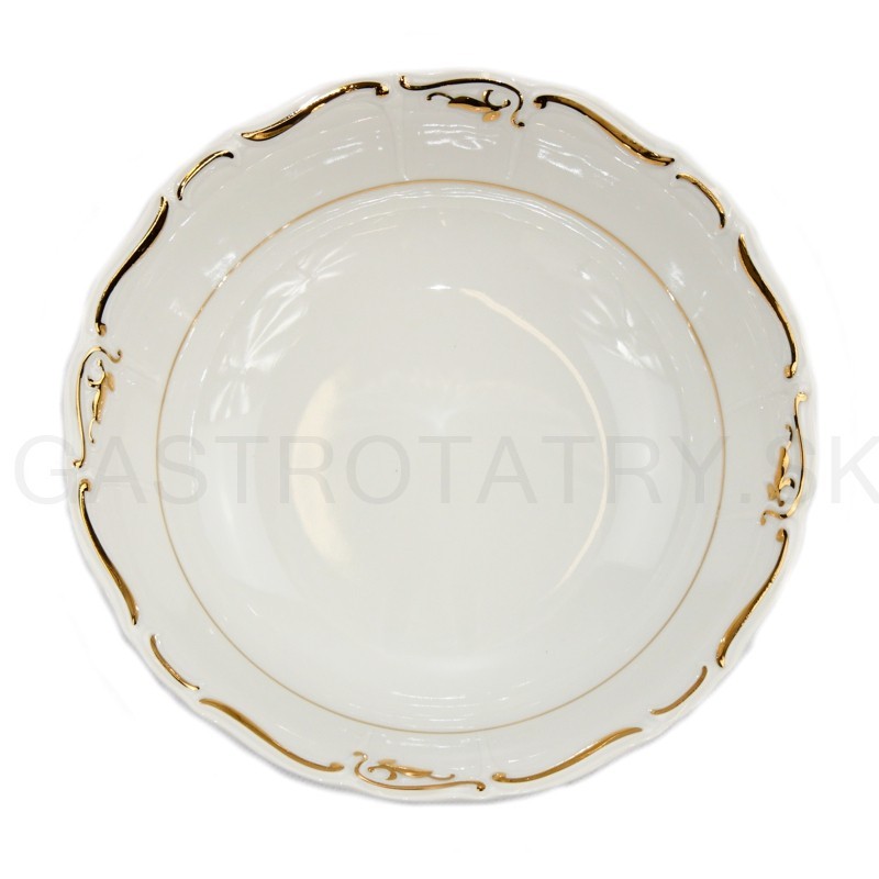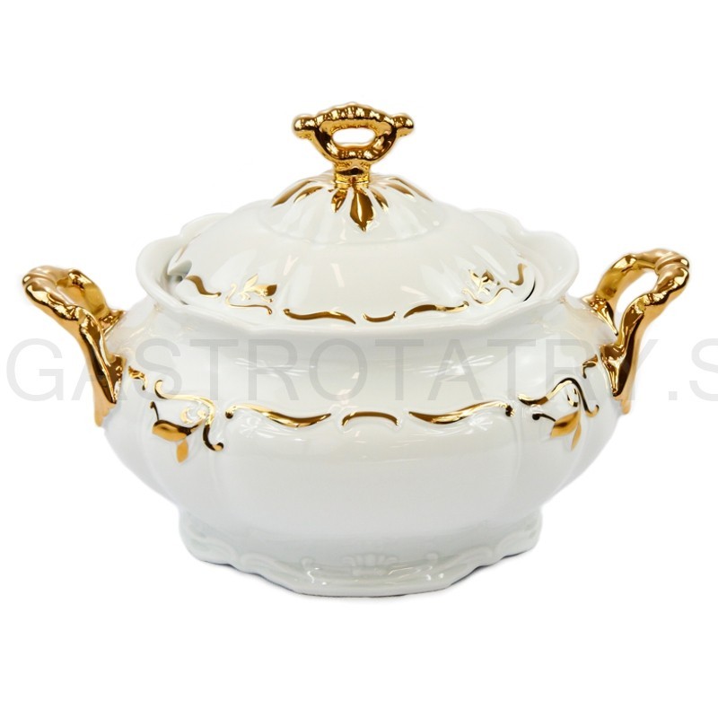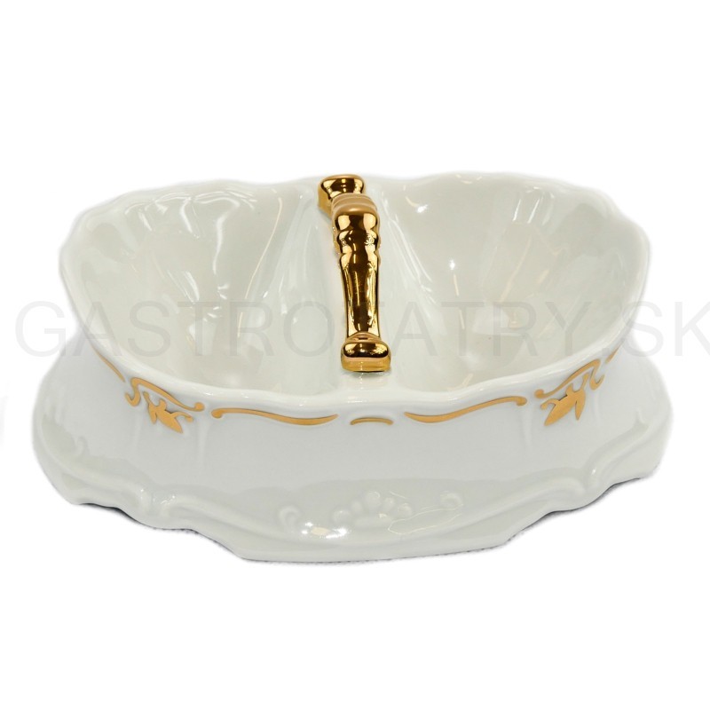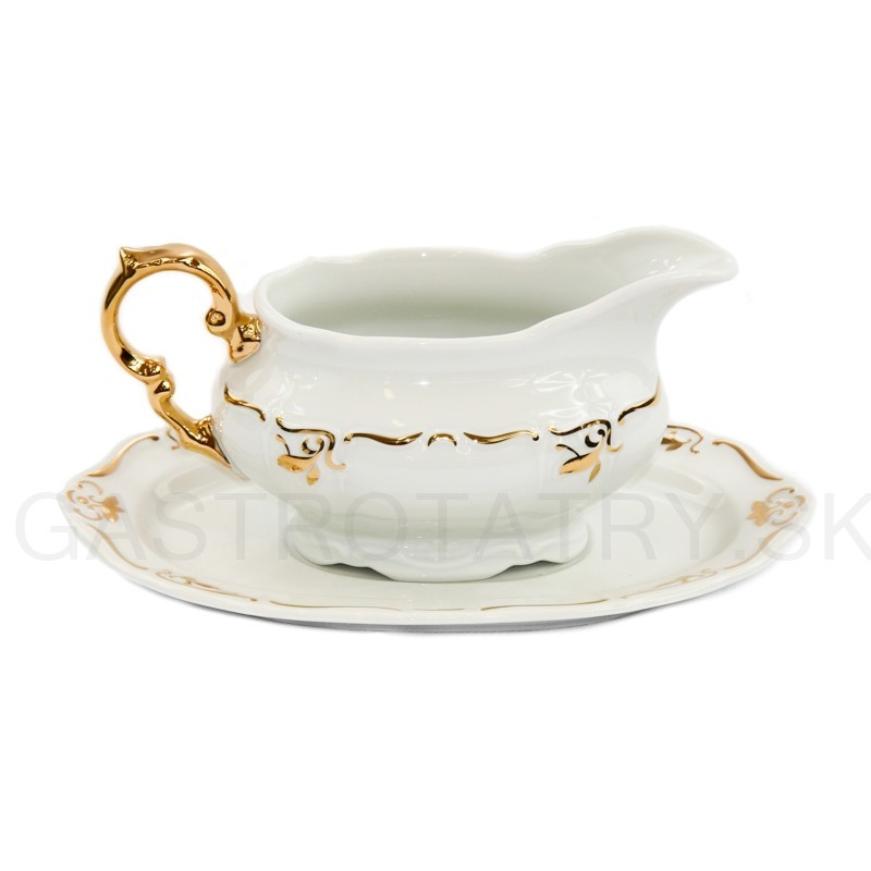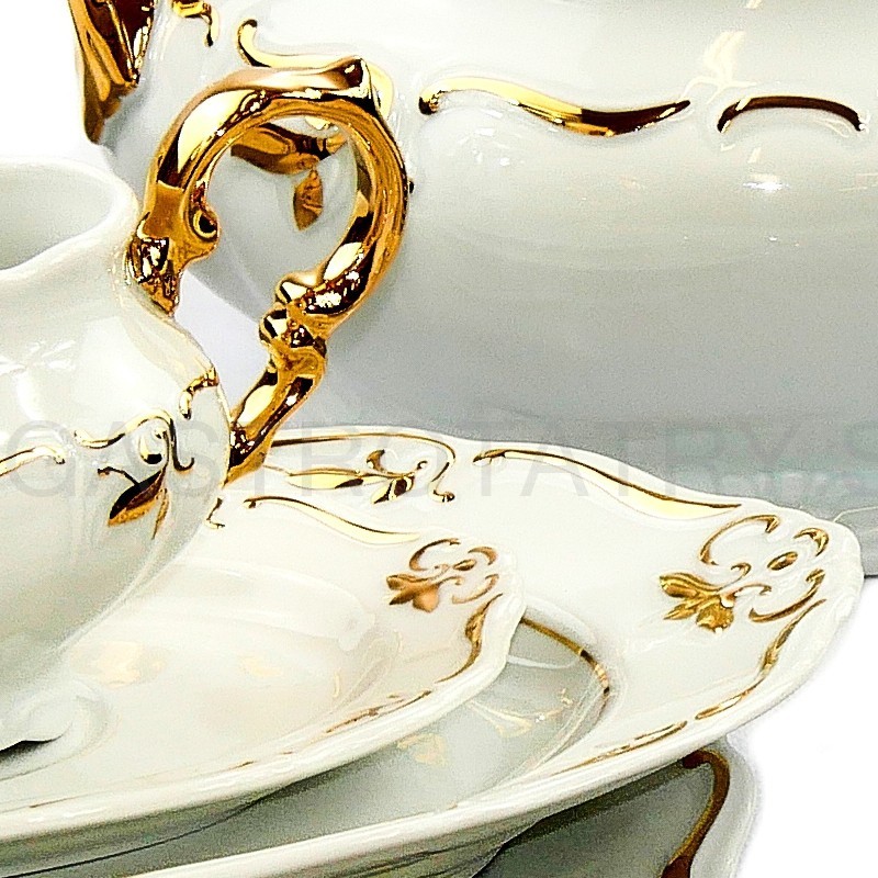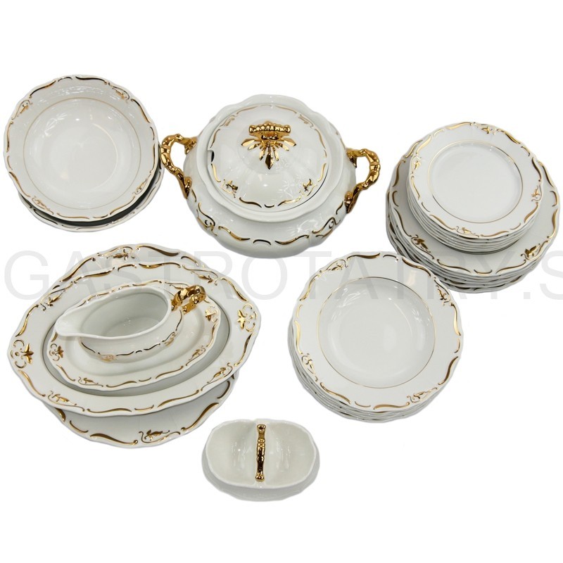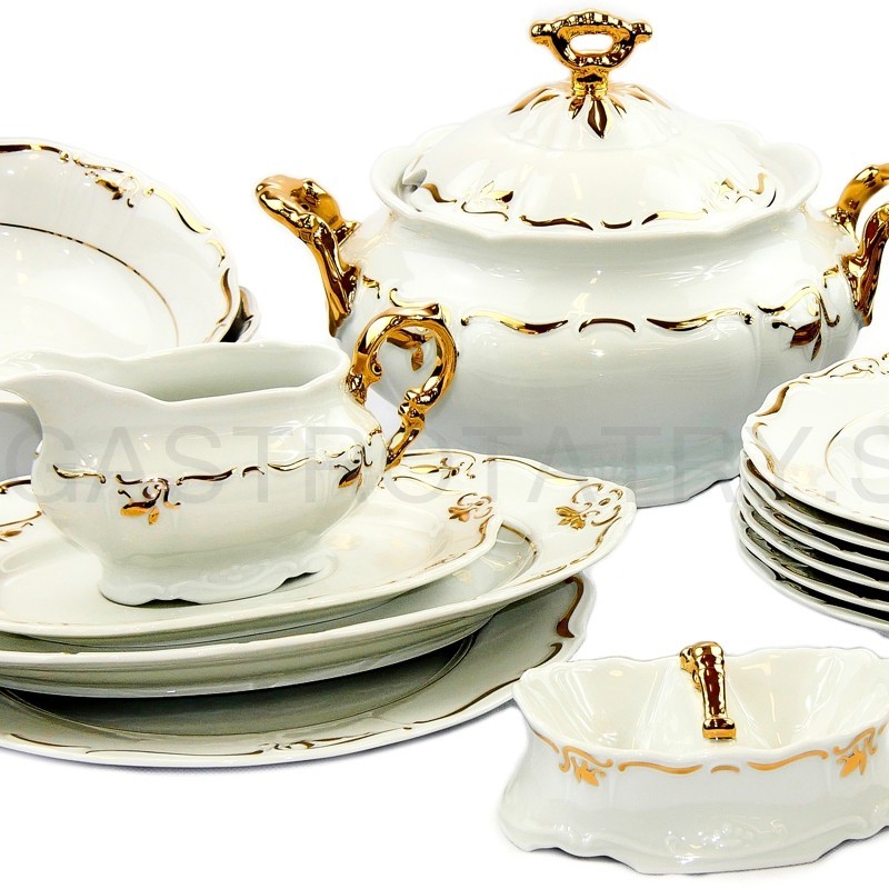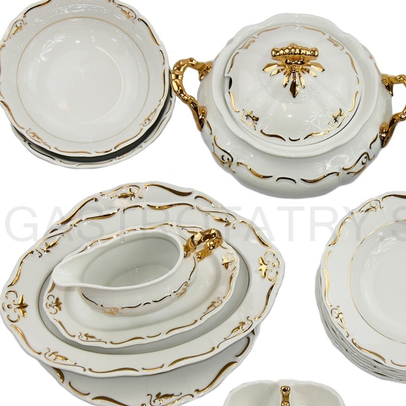 Karlovarský porcelán Maria Louise - Jemný zlatý ornament - obedová súprava 27 D, nie je vhodná do mikrovlnej rúry a umývačky riadu.