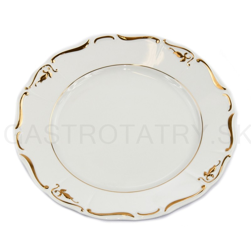 Karlovarský porcelán - MARIE LOUISE tanier plytký 25 cm jemný zlatý ornament. Nie je vhodný do umývačky riadu ani do mikrovlnnej rúry.
