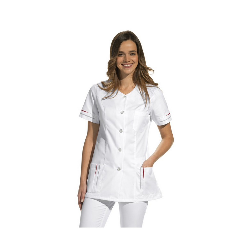 Dámsky kazak s farebnými doplnkami a krátkym rukávom 08/2427, s odševkami, 2 bočné vrecka, 1 náprsné vrecko. Materiál: 50 % PES 50 % BA. Doba dodania cca 2-3 týždne.
