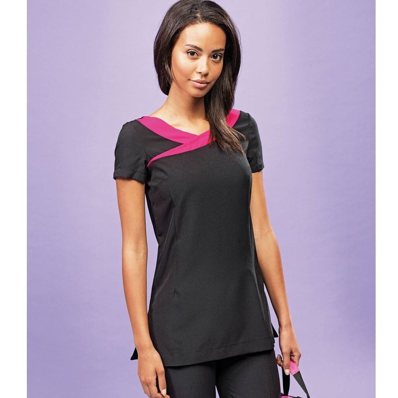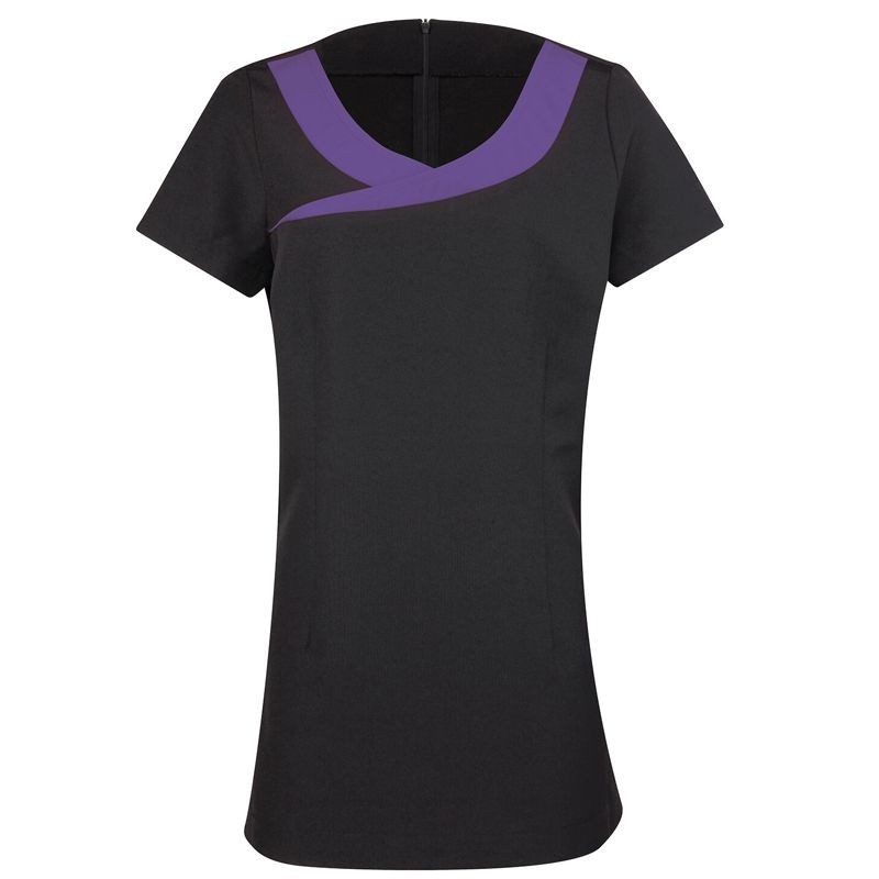 Priliehavá tunika v kontrastnom farebnom vyhotovení. Má princesový strih a zapínanie vzadu na zips. Vyberte si zo štyroch farebných fariantov, ktoré sa najlepšie hodia do vašej prevádzky.