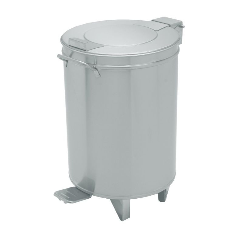 Nerezový odpadkový kôš - nášľapný ▪ odolne nerezove prevedenie zaručuje dlhú životnosť ▪ vodotesne zvarené dno ▪ robustné kolieska ▪ dostupné aj 75 litrové prevedenie, objem 90 l, rozmery Ø 450 x 680 mm