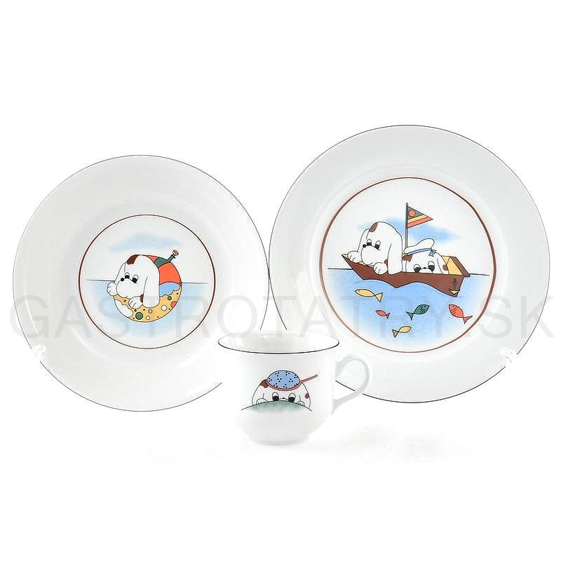 Detská súprava 3 diely - Psíci Angelika II. Obsahuje: 1 x tanier plytký 21 cm, 1 x tanier hlboký 19 cm, 1 x hrnček 225 ml