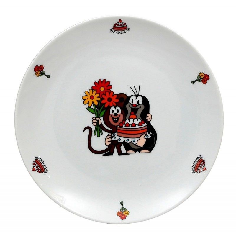 Plytký tanier 21 Krtko - torta. Detský tanier z kvalitného českého porcelánu s originálnym obľúbeným motívom Krtka. Certifikované a zdravotne nezávadné.