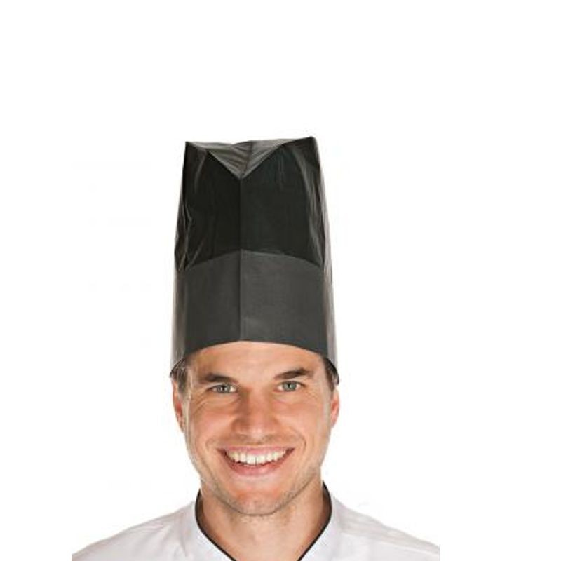 Kuchárska čapica na jednorázové použitie. Univerzálna veľkosť. Materiál: papier. Farba: čierna. Cena je za balenie /10 kus/.1 ks do košíka = 1 bal. do košíka, art. 09803