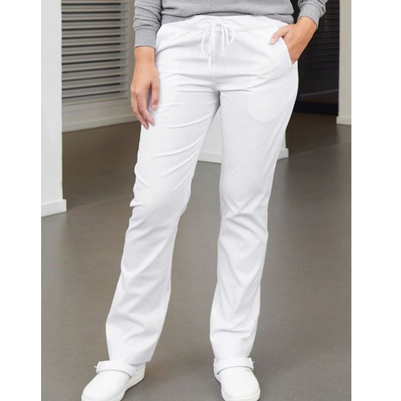 Komfortné nohavice s elastickým pásom pre každodenné použitie. Majú rovný strih, päť vreciek, pútka na opasok a širokú veľkostnú škálu, takže sú dostupné pre rôzne typy postáv. Sú vhodné na industriálne pranie 95°C.