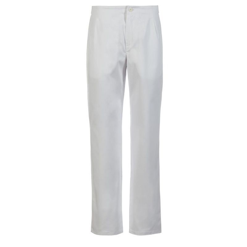 Biele bavlnené pracovné nohavice. Pánske kuchárske nohavice, sťahovacie gombíky vzadu, 2 bočné a 2 zadné vrecká, 100% bavlna, pranie na 90°C, veľkosti od 42 do 62.