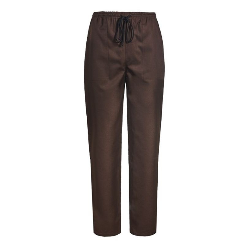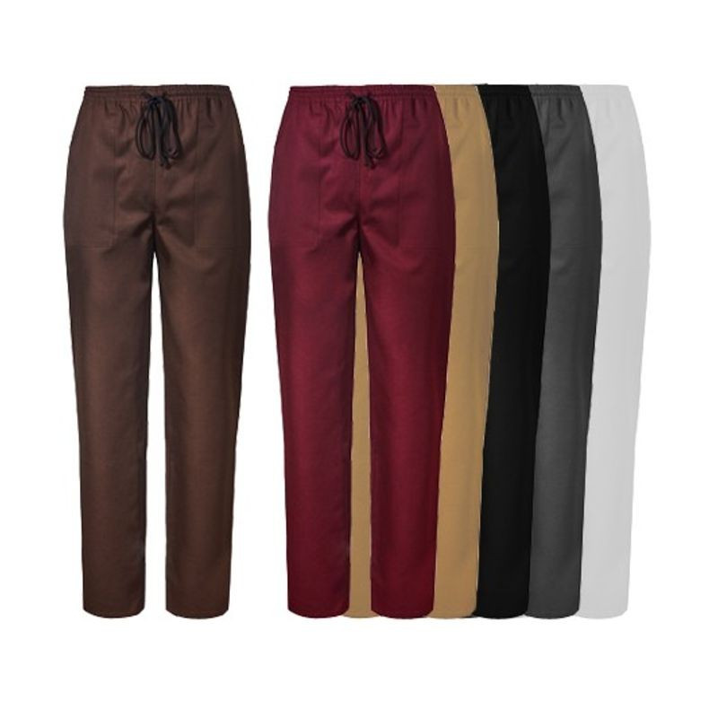 Jednofarebné kuchárske nohavice. Pánske pracovné nohavice, šnúrka v páse, 2 bočné vrecká, 65% polyester / 35% bavlna, pranie na 60°C.