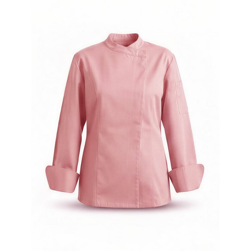 Dámsky rondón ROSETA so zapínaním na cvoky s krycou légou a predĺženým strihom, ktorý rondónu dodáva elegantný nádych. Je vhodný do prevádzok ako kuchyňa,