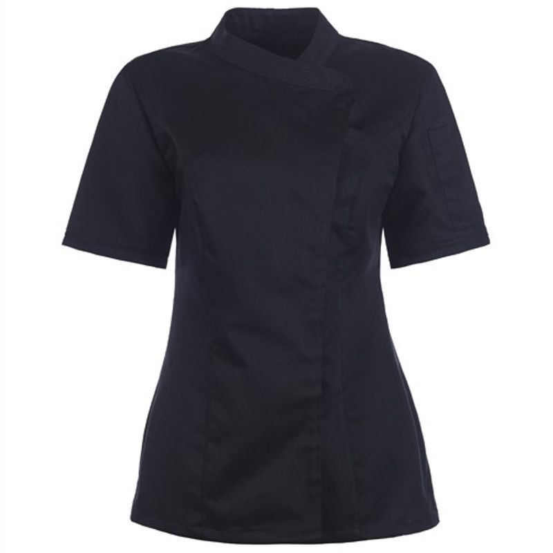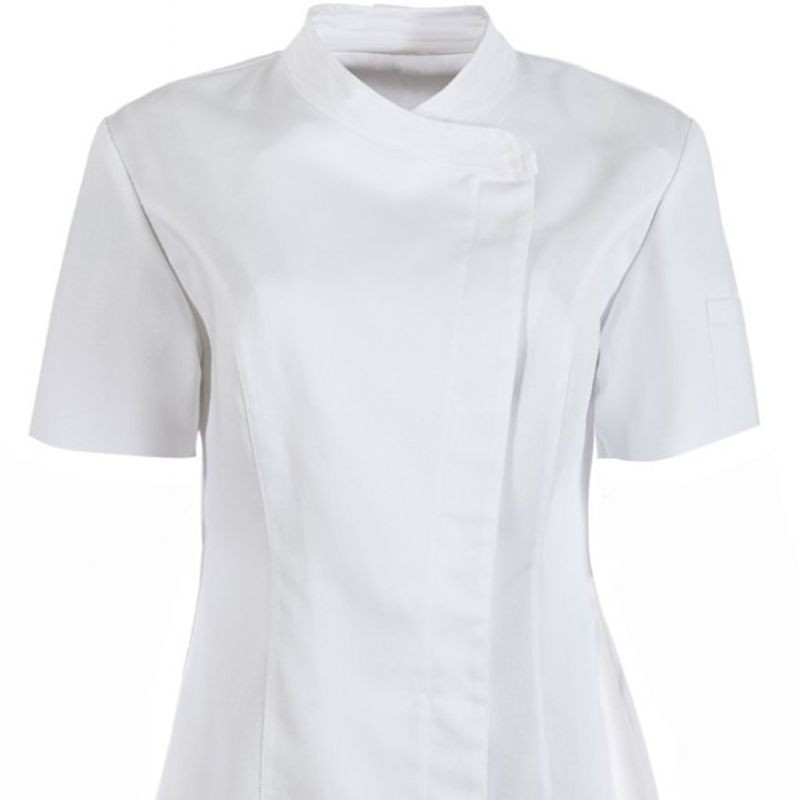 Dámsky rondón so skrytým zapínaním na cvoky, skryté zapínanie na cvoky, vrecko na rukáve, dvoj ihlové šitie, 50% bavlna / 50% polyester, pranie na 60°C, možné farebné prevedenia v bielej a čiernej farbe.