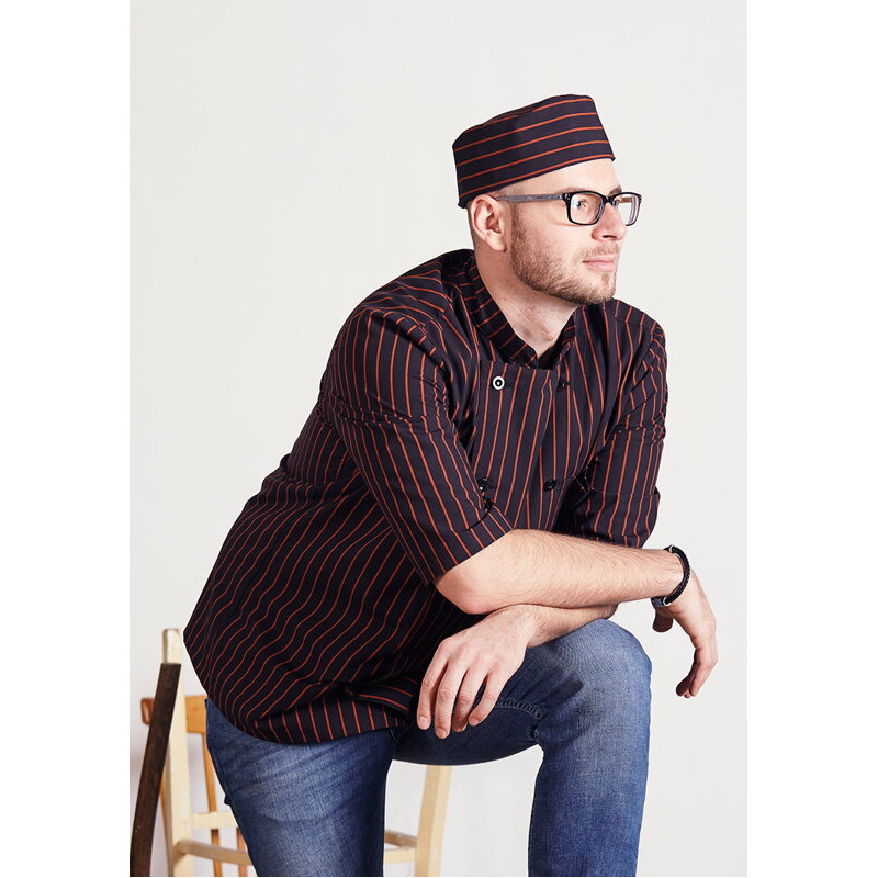 V zadnej časti má otváracie krídielka s termomateriálom pre lepšiu cirkuláciu vzduchu. Má praktické vrecko na hrudi. Je dostupný v 20 farbách, takže ho môžete výborne zladiť s interiérom vašej prevádzky.