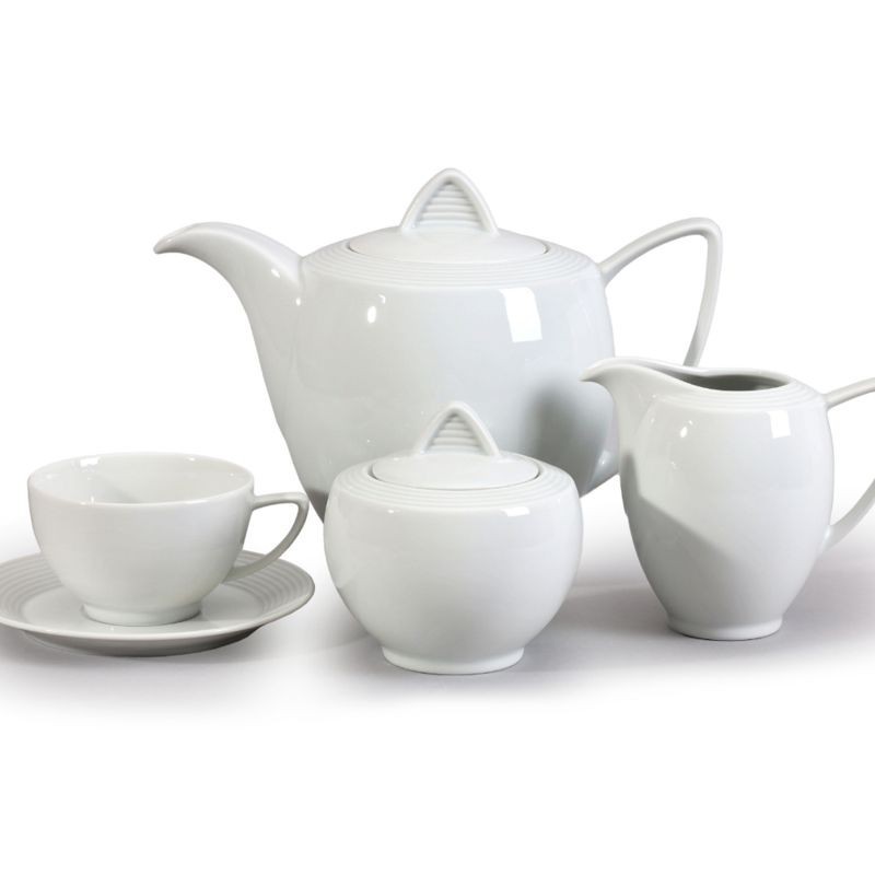 Karlovarský porcelán Lea čajová súprava 17 dielov. Čajová súprava obsahuje: 6x šálok s tanierikom 155 - 240 ml, 1x čajová kanvica s viečkom 1,35 l, 1x cukornička s viečkom - 340 ml, 1x mliekovka - 400 ml.