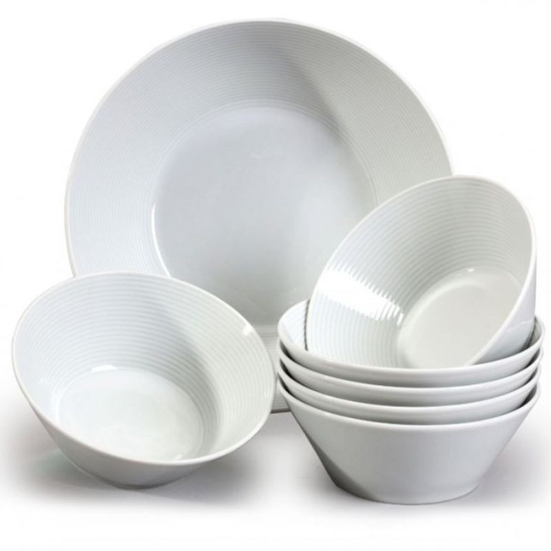 Karlovarský porcelán - LEA kompótová súprava 7 Ddielna biela. Je vhodná do mikrovlnnej rúry aj do umývačky riadu.