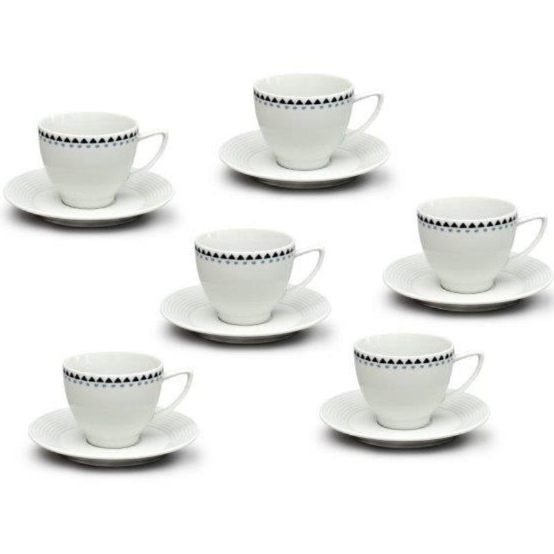 Šálky s podšálkami kávové bodky a trojuholníčky 140 Lea 12 dielne. 6 x šálka, objem 150 ml, 6x podšálka, priemer 140 mm