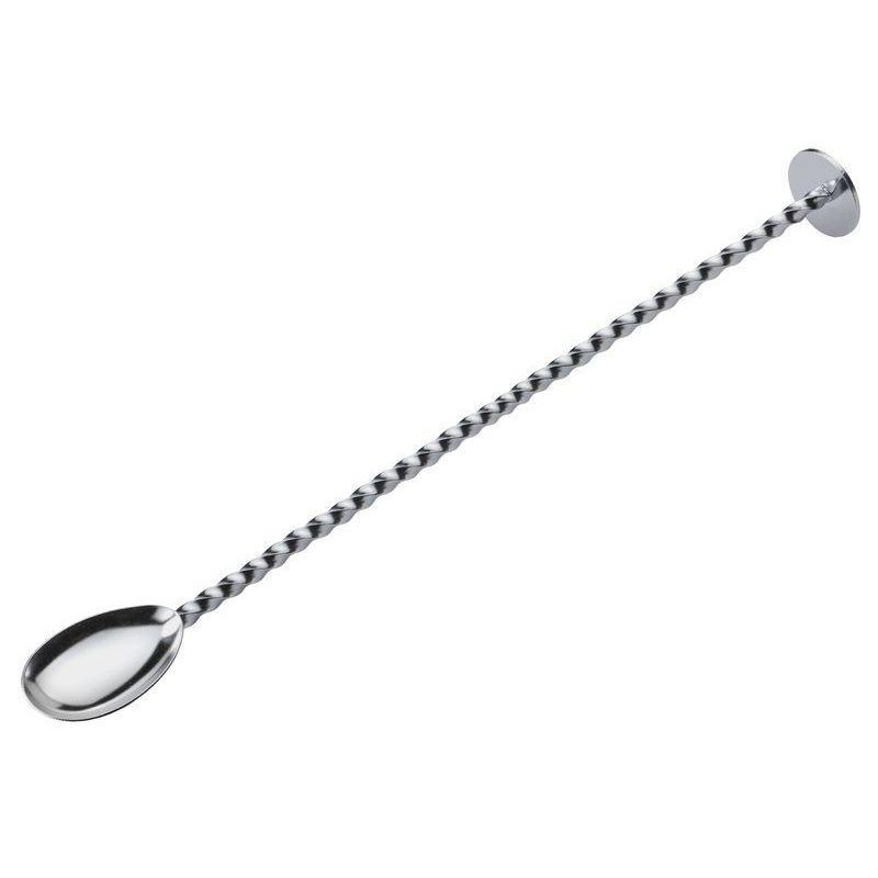 Miešadlo - Barmanská lyžička - nerez. Vyrobené z nehrdzavejúcej ocele. Špirálová rukoväť pomáha rýchlejšie miešať, precízne maskovať a pridávať sódu bez rozstrapkania. S diskom/drvidlom pre ľahké nalievanie vrstiev do kokteilu alebo rozdrvenia ovocia a byliniek. Na odmeranie 5 ml prísad môžete použiť aj lyžicu. Vhodné do umývačky riadu.