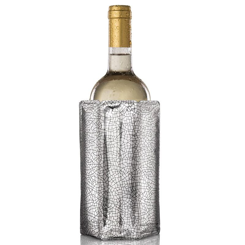 Chladiaca manžeta na víno - strieborná ▪ ku všetkým štandardným fľašiam objemu 0,7 až 1 liter ▪ ideálne pre jednoduché schladenie (už do 15 min.) a udržiavanie vína priamo na stole ▪ manžetu je potrebné pred použitím skladovať v mrazničke, rozmery 146 x 210 x 31 mm