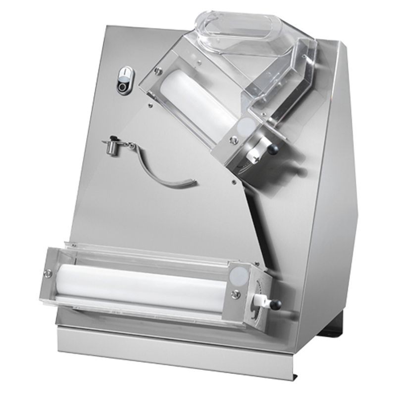 Vaľkač cesta s 2 valčekmi PRISMAFOOD rozmery 475 x 375 x 660 mm, hmotnosť cesta 80 - 210 g, priemer cesta 140 - 300 mm, max. priemer 300 mm,, prípojka 230 V, príkon 0,25 kW ▪ nerezové prevedenie ▪ dva páry valčekov ▪ s praktickým (odoberateľným) mechanizmom na automatické otáčanie cesta ▪ nastaviteľná hrúbka vaľkaného cesta ▪ regulácia hrúbky cesta 1 ÷ 6 mm▪ s možnosťou dokúpenia pedálového ovládania ▪ s možnosťou objednania so systémom „Touch and Go”, ktorý spustí stroj automaticky pri vložení cesta ▪ dostupná aj verzia s priemerom cesta do 45 cm
