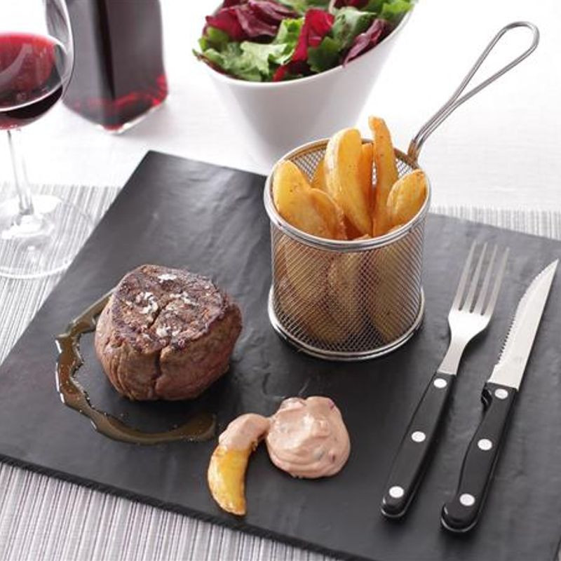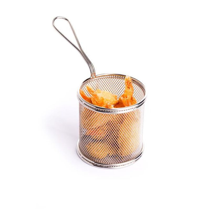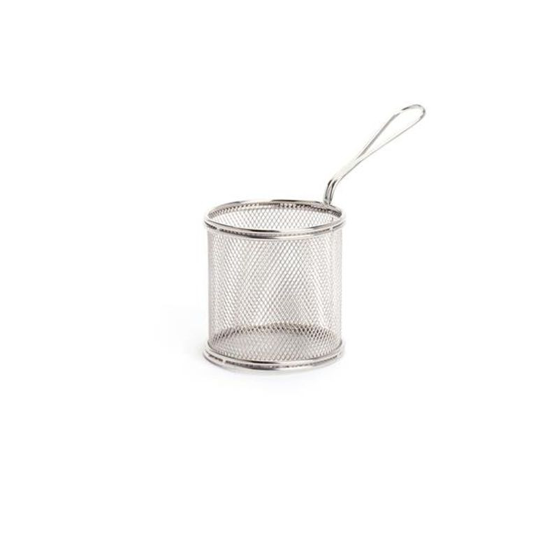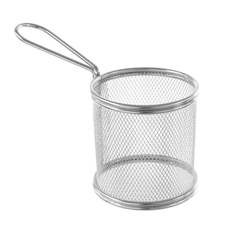 Miniatúrny košík na vyprážané maškrty je praktickým doplnkom určeným pre profesionálnu gastronómiu aj domáce použitie. Je vyrobený z nehrdzavejúcej ocele. Ideálne na elegantné servírovanie vyprážaných pochutín. Vhodné na umývanie v umývačkách riadu. K dispozícii sú modely košov rôznych tvarov. Rozmery: 90x90x90 mm