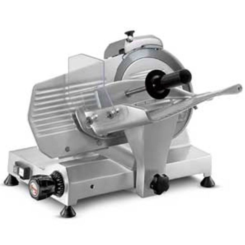 Nárezový gravitačný stroj MIRRA 220 A.I.C. s teflonovým nožom. Rozmery: (šxhxv): 560 x 570 x 475 mm, napätie 230 V, príkon 147 W. pohon remienkový.