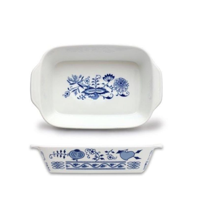 Misa zapekacia obdĺžnik - cibulák 207, je vhodná do mikrovlnnej rúry a umývačky riadu. Výška: 45 mm, dĺžka: 207 mm, šírka: 130 mm. Karlovarský porcelán THUN 1794.