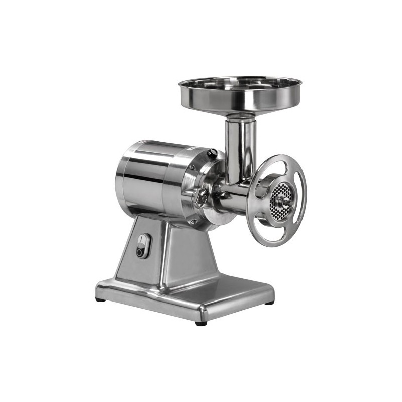 Mlynček na mäso Fimar 22 s nerezovou hlavou, rozmery: 450 x 290 x 520 mm, produkcia kg/h 300, prípojka/príkon (V/kW) 230/0,75 ▪ s kompletne odnímateľnou hlavou, ktorú je možné v súlade s HACCP skladovať v chladničke ▪ hlava je umývateľná v umývačke riadu ▪ telo z lešteného hliníka ▪ nože a sitko z nerezu, samoostriaci nôž ▪ vstupný otvor Ø52 mm ▪ v cene 6 mm sitko