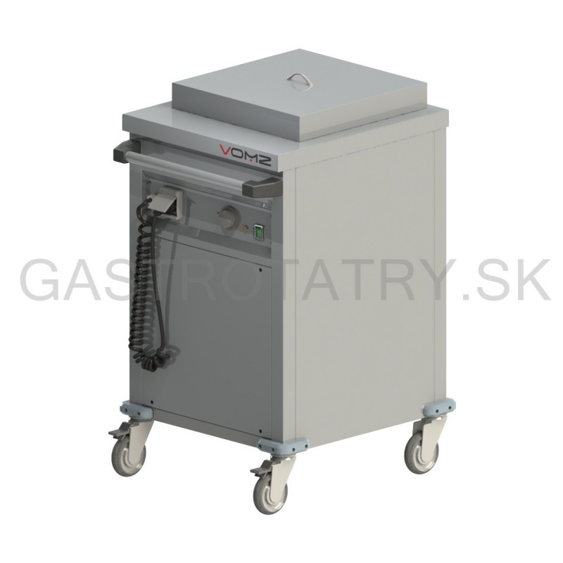 Ohrievací vozík tanierov, max priemer taniera 260 mm, rozmery (šxh) 450x500 mm, príkon 0,7 kW, napätie 230 V. výška vozíka štandardne 850 mm.