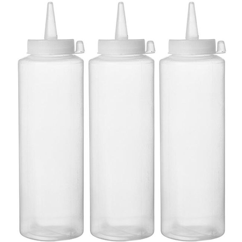 Dávkovač na studené omáčky - 3 kusy, 0,2 l, Priehľadná. Vyrobené z polyetylénu. Uzáver zaisťuje, že omáčka zostane svieža a hygiena zostane zachovaná.