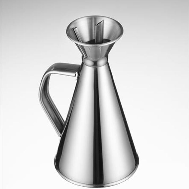 Dávkovač olivového oleja, objem 0,25 l, ⌀84x(V)158 mm. Vyrobené z lesklej nehrdzavejúcej ocele. Kónický tvar zaisťuje stabilitu.
