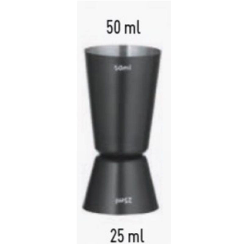 Barmanská mierka - jigger 25/50 ml, BarUp, Čierna, ⌀ 45 mm x (výška) 86 mm. Vyrobené z nehrdzavejúcej ocele s čiernou práškovou povrchovou úpravou s matným povrchom. Nie je vhodný do umývačky riadu.