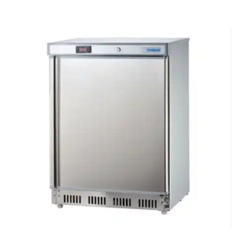 Nerezová chladnička 129 l STALGAST®, teplota od +0 °C do +8 °C - v cene 2 rošty s rozmerom 502 x 440 mm - objem 129 l - prípojka 230 V, príkon 0,1 kW - rozmery 600 x 585 x 855 mm. Energ. trieda A ▪ vonkajšie vyhotovenie z nerezu ▪ vnútorné vyhotovenie z odolného plastu ▪ do okolitej teploty 30 °C ▪ uzamykateľné dvere ▪ chladničky s automatickým odmrazovaním