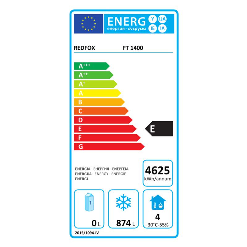 Mraznička nerezová, objem 1400 l, model RT-1400M. Rozmer: 1388 x 845 x 2008 mm, príkon 1,76 kW, prípojka 230 V, chladenie: ventilované, dvere: plné,