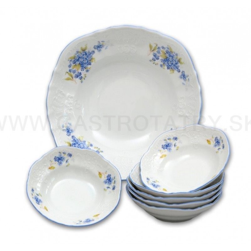 Karlovarský porcelán - Bernadotte kompótová súprava 7 dielna nezábudka modrá linka. Je vhodná do umývačky riadu aj do mikrovlnnej rúry.