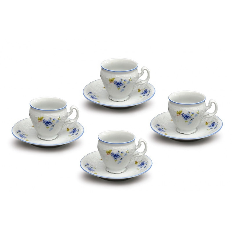 BERNADOTTE šálky s podšálkami 115 mm nezábudka modrá linka 12 dielna. Obsahuje: 6x šálka s podšálkou 115 mm.