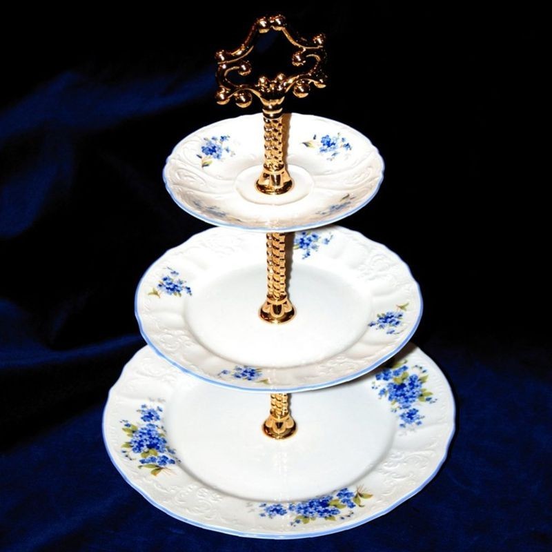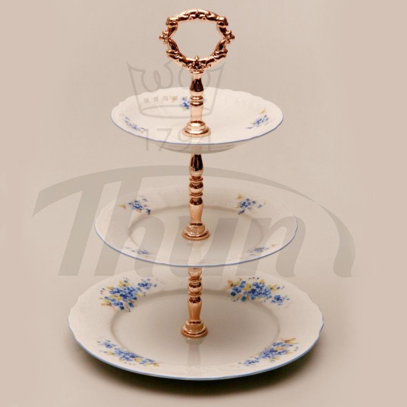 Karlovarský porcelán BERNADOTTE BERNADOTTE biela nezábudka + modrá linka etažérka 3 D.