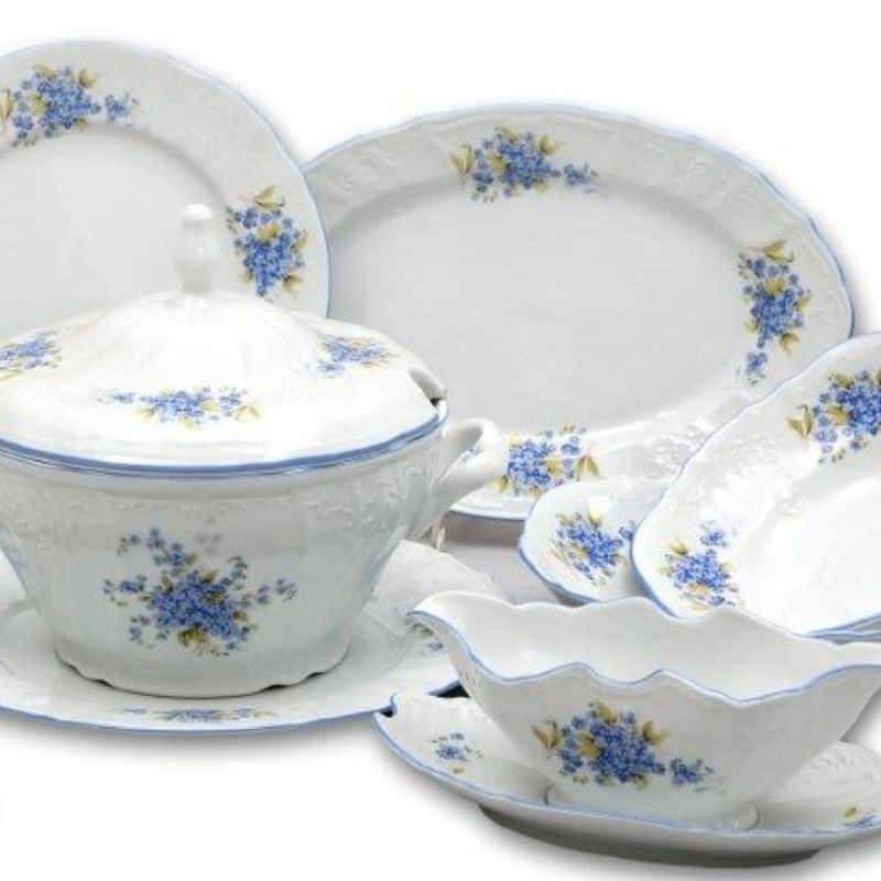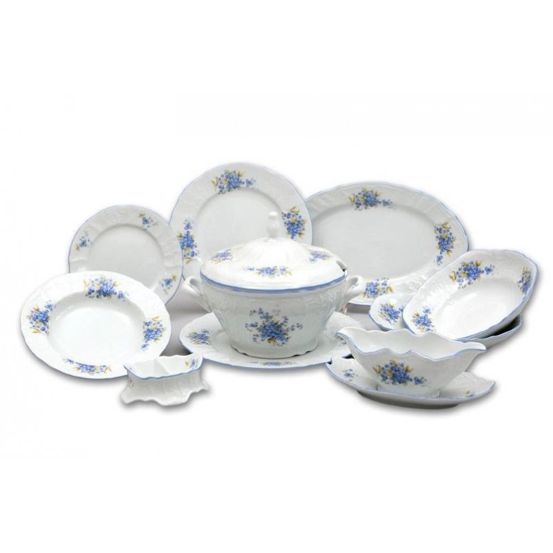 Karlovarský porcelán BERNADOTTE Nezábudky biela obedová súprava modrá linka 26 D.