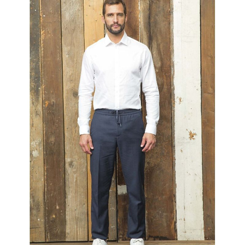 Tieto nohavice kombinujú kostýmovú eleganciu s pohodlým voľnočasového oblečenia. Výborne sedia vďaka materiálovému zloženiu sú veľmi príjemné na nosenie. Sú mierne zúženého strihu a majú dve predné a dve zadné vrecká.