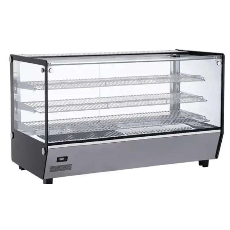 Ohrevná stolová vitrína, objem 200 l - hranatá ▪ termoizolačné sklo zo štyroch strán ▪ nerezový predný a zadný kryt ▪ vzadu s posuvnými dvierkami ▪ teplota: 30°C do 90°C ▪ s osvetlením (LED), rozmery: 1219 x 555 x 685 mm, teplota +30°C ~ +90°C, prípojka 230 V, príkon 1,8 kW