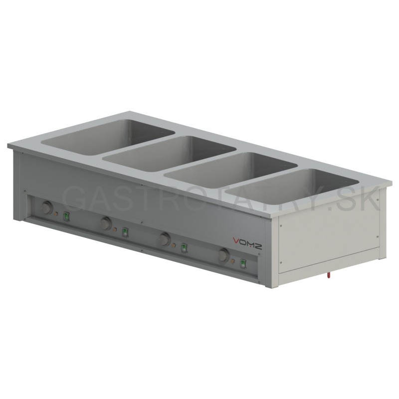 Výdajná ohrievacia vaňa, hĺbka 700 mm, šírka 1500 mm, 4 GN1/1, príkon 3 kW, napätie 230 V. Výška vane štandardne 315 mm ▪ lisované vane ▪ na zabudovanie ▪ verzia s digitálnym termostatom za príplatok