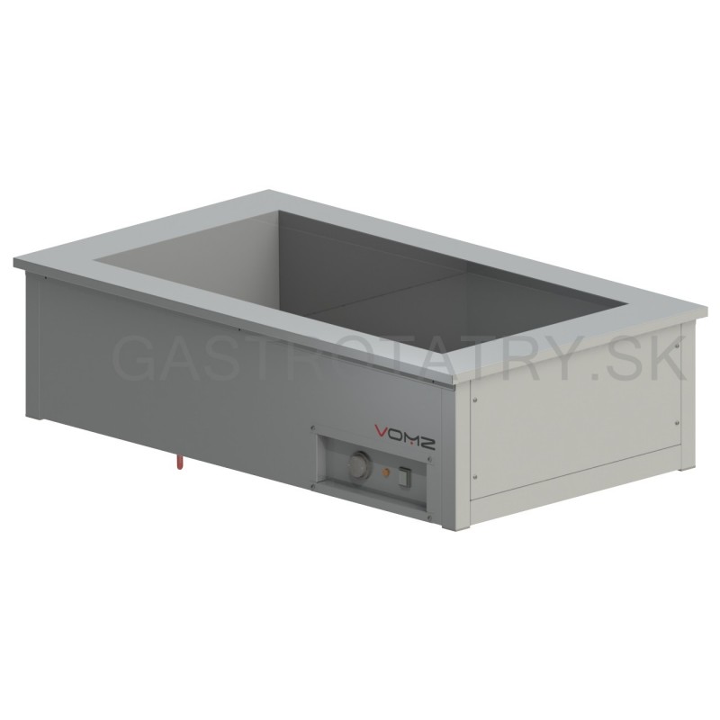 Výdajná ohrievacia vaňa, hĺbka 700 mm, šírka 1500 mm, 4x GN 1/1, výška vane štandardne 315 mm ▪ zváraná vaňa ▪ na zabudovanie ▪ verzia s digitálnym termostatom za príplatok, príkon 3,00 kW, napätie 230 V, Ventil na napúšťanie a vypúšťanie vody (VOZ1) ▪ Ventil na vypúšťanie vody (VOZ2 – VOZ4) ▪ Regulácia teploty +20/+80°C ▪ Hĺbka vane štandardne 220 mm