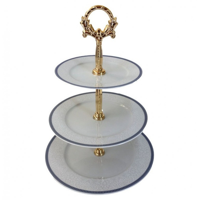 Etažerka 3 diel tanierová OPAL ČIPKA MODRÁ