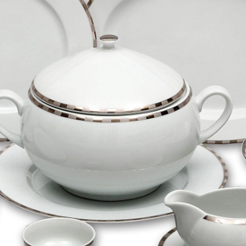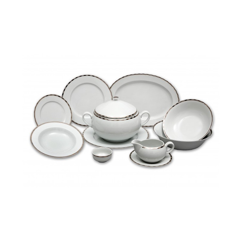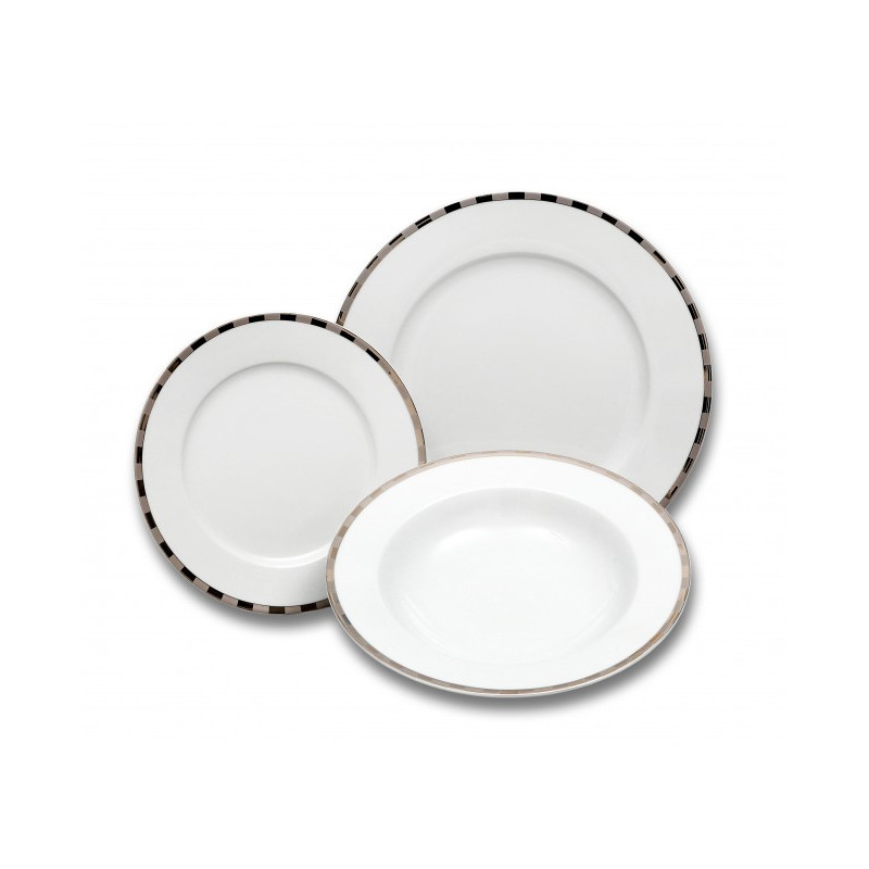Karlovarský porcelán - OPAL Platinový okraj tanierová súprava 18 dielov. Tanierová súprava je vhodná do mikrovlnnej rúry a umývačky riadu.