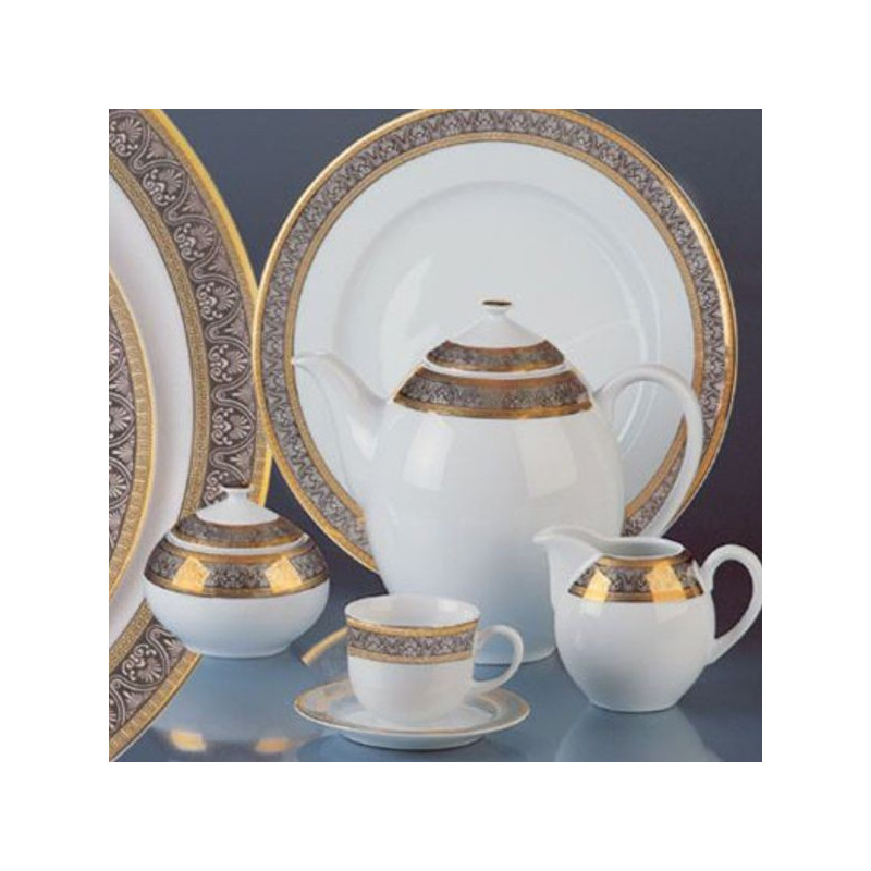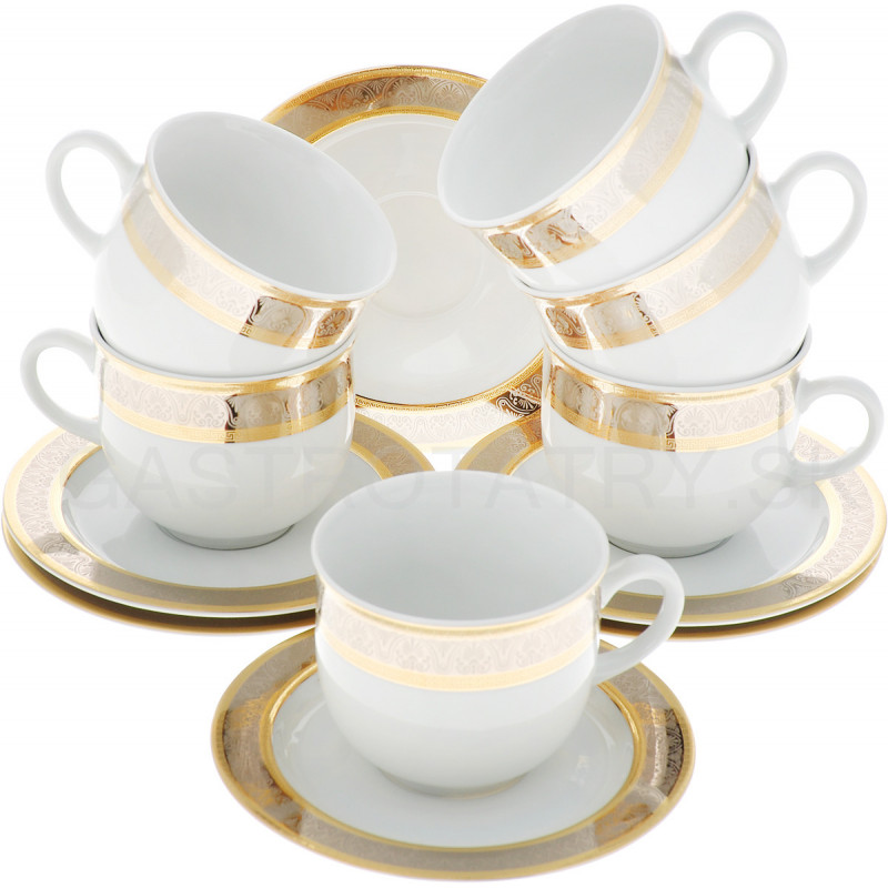 Šálky a podšálky čajové 155 Opal zlato-platina 12 dielne. Obsahuje: 6x šálka 270 ml, 6x podšálka, priemer 155 mm