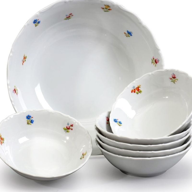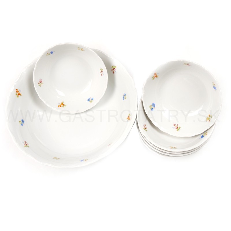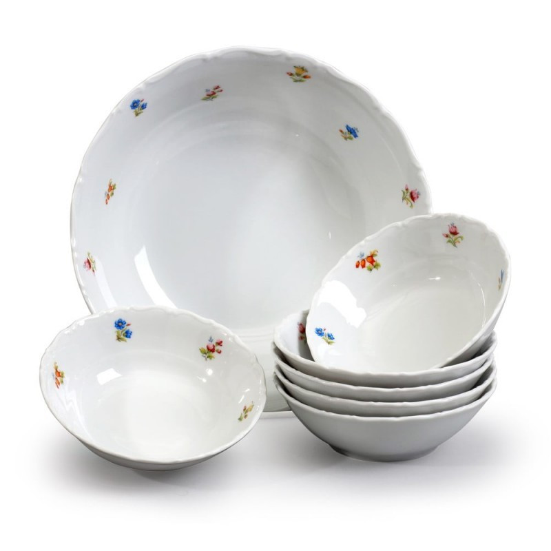 Karlovarský porcelán - OPHELIA kompótová súprava 7 dielna kvietky bez linky. Je vhodná do umývačky riadu aj do mikrovlnnej rúry.