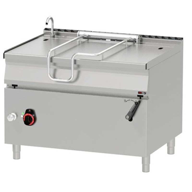 Panvica smažiaca elektrická, nerezová, model BR-90/120E/N, rozmery 1200x900x900 mm, prípojka 400 V, príkon 18 kW, objem vane 120 l, rozmer dna 1120x560 mm, prevedenie vane/dna nerez/nerez, sklápanie ručné mechanické, regulácia teploty: 50-300°C, integrované napúšťanie studenej vody, hmotnosť 190 kg