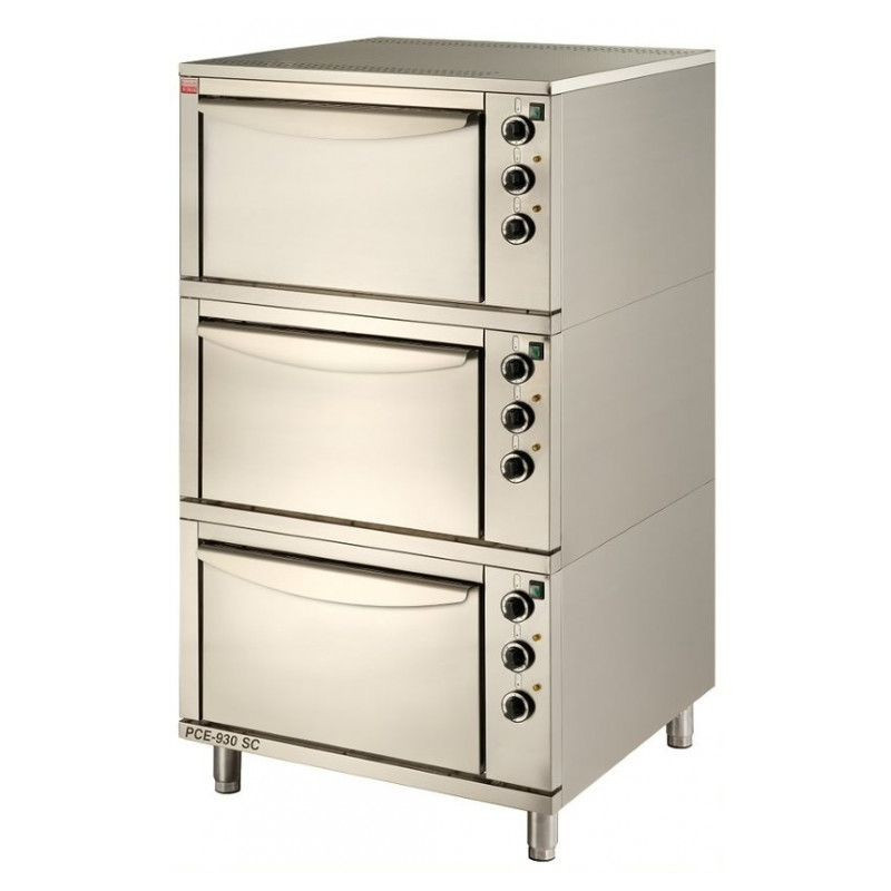 Elektrická pec trojrúrová PCE-930 SC. Skladá sa z troch častí (trojrúrová pec). Statická / teplovzdušná rúra na pečenie. Má samonosnú konštrukciu a nastaviteľné nožičky na vyrovnanie nerovností podlahy. Elektrická rúra s podstavcom je zostavená zo samostatných rúr postavených priestorovo priamo nad sebou v počte prislúchajúcom k danému typu. Každá rúra je osobitne vybavená hl. vypínačom, pracovným termostatom a signalizačnými kontrolkami, s dvoma ventilátormi a dvoma tepelnými telesami. Vonkajší plášť zostavy je zhotovený z nerezovej ocele.