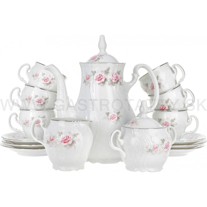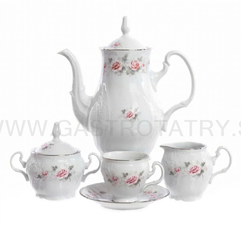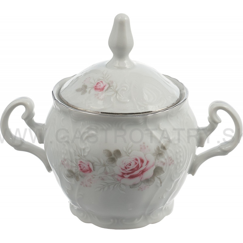 Karlovarský porcelán -Cukornička šedo-ružový kvet platinová linka BERNADOTTE
