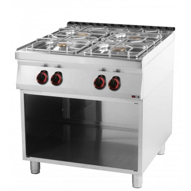 Rozmer: 800x900x900 mm (šxhxv), príkon plyn: 24,5 kW, plynový príkon horákov: 1x3,5 kW + 1x5 kW + 2x8 kW, počet horákov: 4 na otvorenom podstavci, zapaľovanie pilotným plameňom, nerezové rošty horákov, príslušenstvo na objednávku: - dvere