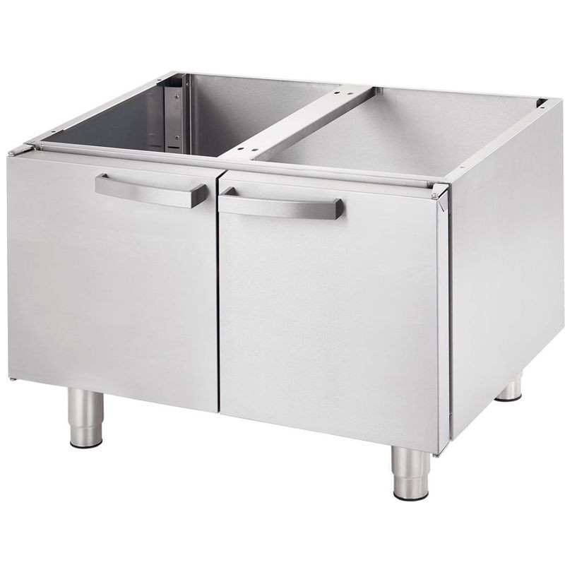 Podstavec pod varnú líniu Stalgast ▪ zo všetkých strán krytovaný ▪ s medzipolicou ▪ s krídlovými dvierkami, rozmery 800 x 640 x 600 mm