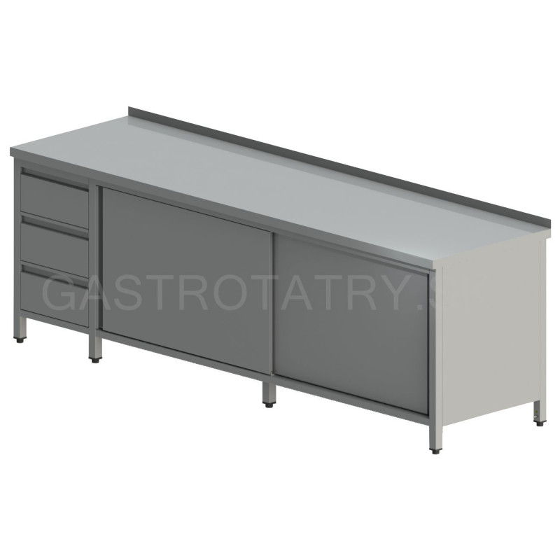 Pracovný stôl 3-zásuvkový bočný, posuvné dvere, dlhý